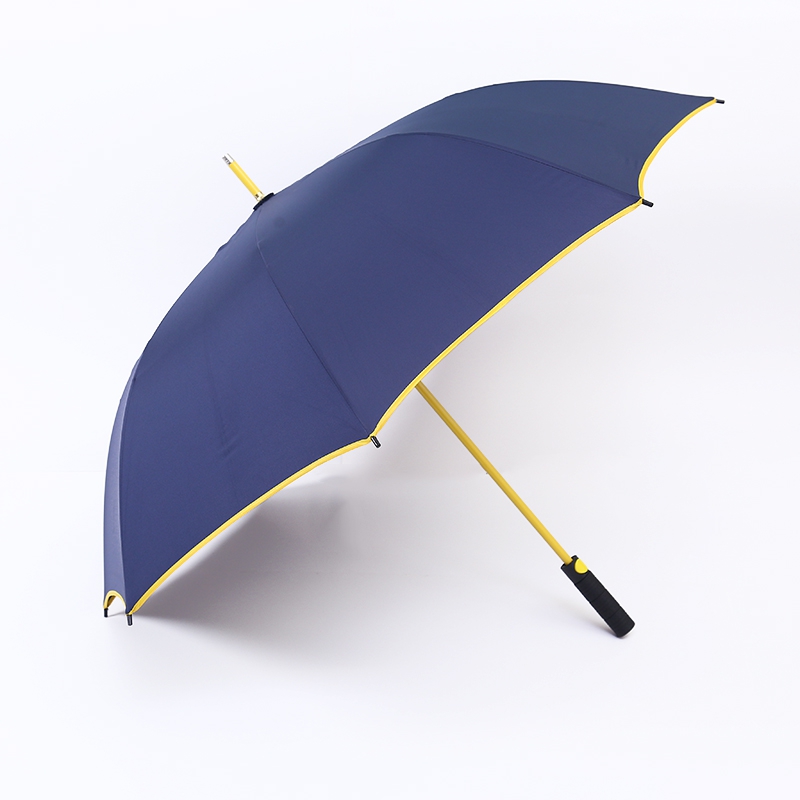 Golfgul og blå av høy kvalitet med automatisk paraply-paraply RU1984 er egnet for forskjellige friluftsaktiviteter som golf, fotturer, camping, fiske osv. Enten det er regnfullt eller solfylt, denne paraplyen kan gi deg pålitelig ly og beskyttelse. Samtidig gjør det stilige utseendet og design av høy kvalitet også det til et uunnværlig moteelement i dagliglivet.
