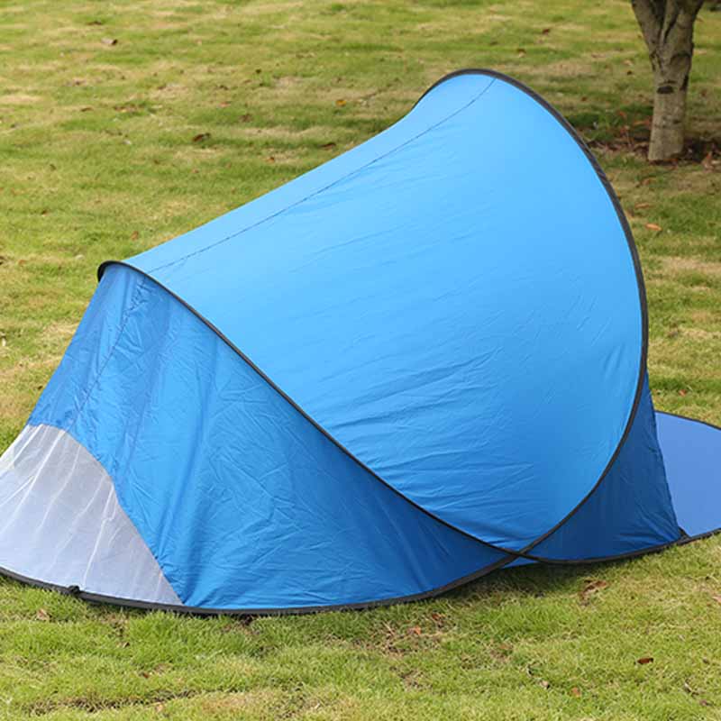 Fiberfiberrammen på 5 mm diameter sikrer at teltet raskt utfoldes i løpet av 3 sekunder uten den tungvint byggeprosessen. Enten det er en strand, gress eller campingplass, kan du ha et behagelig ly på kortest tid.
